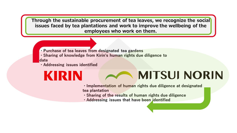 The Kirin Group has been conducting human rights due diligence*2 upstream in its supply chain since 2018 in line with the global standard, the UN Guiding Principles on Business and Human Rights, and the Kirin Group Human Rights Policy. So far, the Kirin Group has done so in the supply chains of coffee beans in Laos, soya beans in China, tea leaves in Sri Lanka, grapes in Argentina and sugarcane in Brazil. The experience and knowledge gained from those initiatives will be used in our human rights due diligence efforts with Mitsui Norin, and any issues identified will be considered for resolution in collaboration with Kirin Holdings and Mitsui Norin.